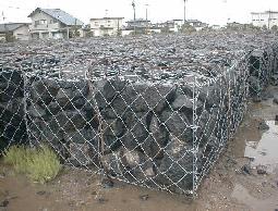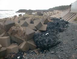 | 現在荒波や、津波に備えて応急対策が措置されている | |