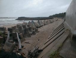| 海岸堤防沖200メートル沖に離岸提 | 現在応急措置として置いてある |