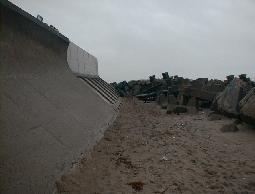 | ● | 荒波対策として土手には、L字タイプのコンクリート壁で土手からの海水があふれ出るのを防ぐ対策 |