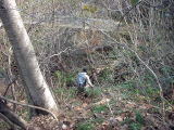 | 雑魚さんとの待ち合わせ場所に着いてみるとなんと相模ナンバーの車があった。くーーー先行者か。雑魚さんが話をつけに行きます。相模ナンバーのフライマンにはここから先に入ってもらい我々はちょっと下流の堰堤から入渓することになりました。遠くからワザワザ訪れたんでしょうから沢山釣ってきな〜。リリースはしっかりしてね。頼もしいザッコ親分でした(^^)。ロッドは藪沢用のMiyuki-Rod