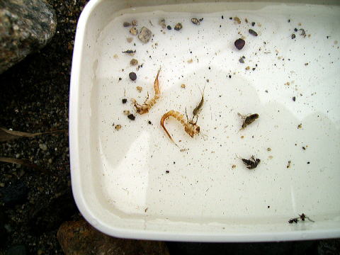 上流になるにつれてイワナの型が良くなってきました。釣り上げられたイワナはビックリ顔。お口をあけているので、ちょっと失礼して、どんな虫を食べているのかストマックさせてもらいました。ストマック後は、即、リリース。イワナくんありがとうね。