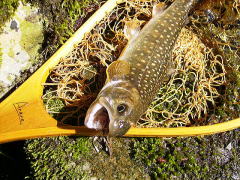 フライボックスにアダムスPが一本だけ。「どうしようか?」これは奥の手ということにして使わない。フライパッチにある使い古しのアダムスPにフロータントをたっぷりつけてティペットに結びました。さて、今日のイワナくんのご機嫌はどうだろうか?何回かフライを流した。イワナは出てくれるんだけれどかからない。僕のアワセが早かったのかもしれないな。ヤマメばかり釣っているとどうしてもアワセが早くなってしまう。だから、イワナを釣り始めると出るけどかからないんだと思う。アワセのタイミングさえ合えばなんとかなるはずなんですが・・・この時期には、よくあることです(汗) で、ようやくイワナくんとご対面出来ました。