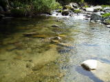 昨年は右岸側を流れていたはず・・・新しい流れにはヤマメたちも困っているだろう。そんなことを思いながらフライを流すとポン!とヤマメが跳ねた。どうやら健在のようだ。ところが、何回流してもヤマメは出るけど、乗らない。フライをチェンジしてみる。EHC#18に変えた。