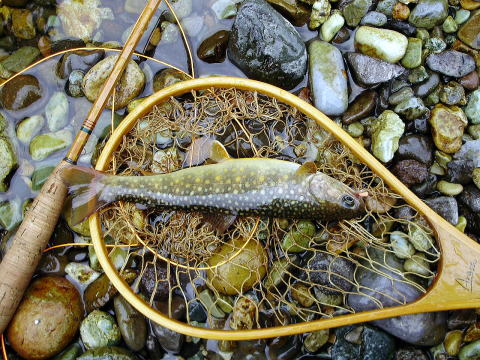 ヤマメはポンポンと出てくれた。やっぱり釣り人が少ないのだろうか?それとも、ヤマメたちが私を歓迎してくれているのかな?この川のアベレージサイズ。このサイズでも真竹ロッドは柔らかいので結構楽しめる。まちがって、でかいのが掛かったりしたら慌てますけどね。あとは腕だね。いや、運か。(笑)